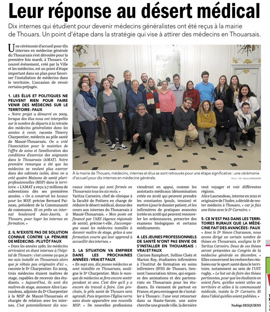 Le mardi 29 novembre dernier, les internes du territoire de la CPTS ont été conviés à un pot de bienvenue. L’occasion de se voir offrir un panier garni Thouarsais. L’occasion de présenter la maison des internes qui vient d’ouvrir ses portes au premier novembre afin de proposer une solution de logement, mais également l’association des étudiants infirmiers de l’IFSI de Thouars qui proposent des soirées thématiques tout au long de l’année. Le Dr Carneiro cheffe de clinique de la faculté de médecine de Poitiers a pu présenter l’accompagnement qui est proposé aux internes dans leur travail de thèse avec notamment une aide statistique en partenariat avec la CPTS.