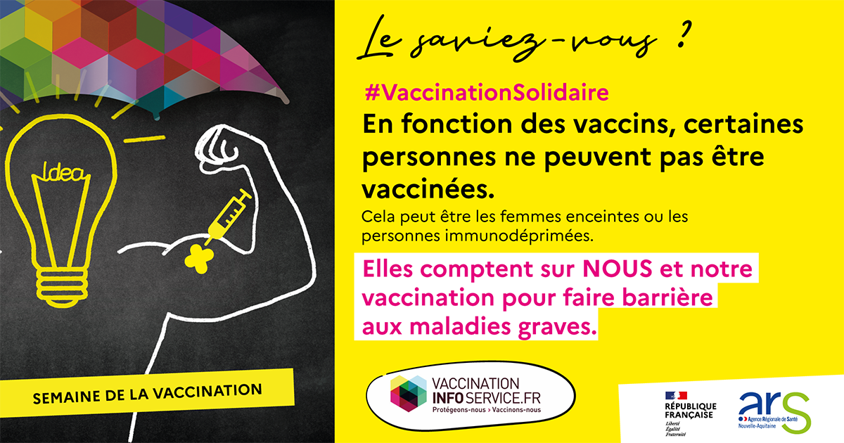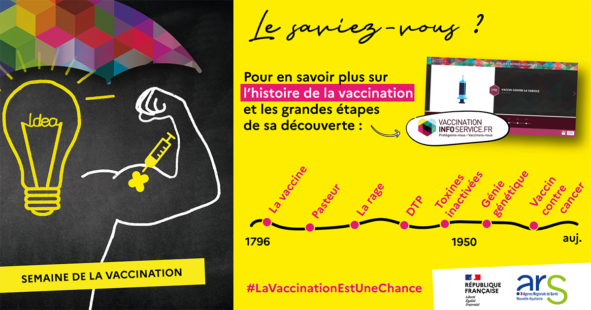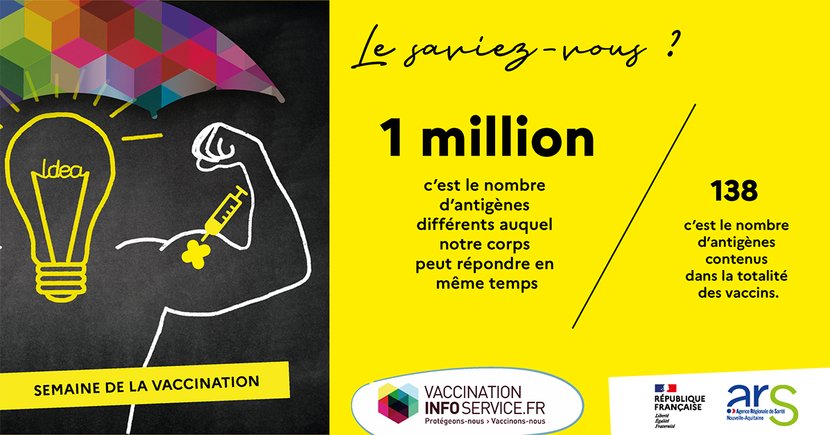 La vaccination est l’une des plus belles découvertes médicales. C’est une chance de pouvoir en bénéficier. Du 24 au 30 avril, c’est la semaine de la vaccination, l’occasion d’informer sur l’actualité vaccinale, de répondre aux nombreuses questions, de promouvoir les différents vaccins et comment tenir à jour ses vaccinations.