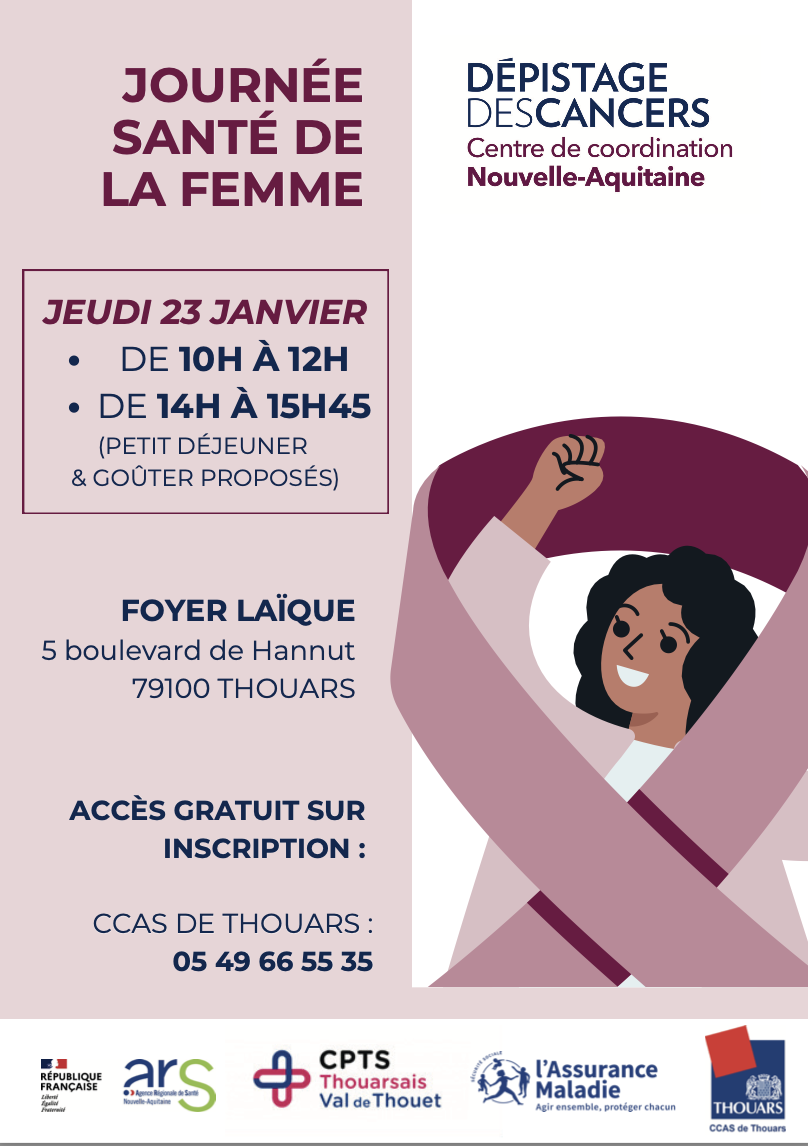 Accueil - Actualités - jeudi 23/1/2025 Journée santé de la femme au Foyer Laïque de Thouars jeudi 23/1/2025 Journée santé de la femme au Foyer Laïque de Thouars