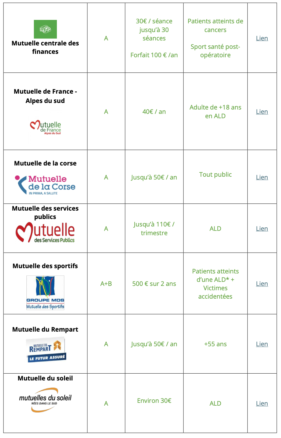 B : Prise en charge d’un bilan personnalisé pour la reprise d’une activité physique adaptée