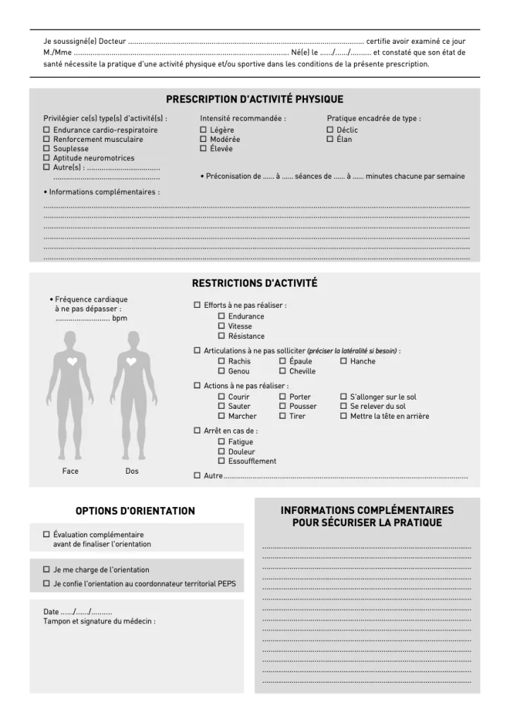 Le formulaire de prescription PEPS est à compléter et à remettre au patient en fin de consultation.